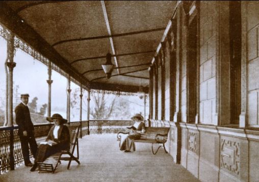 Early 20th century guests enjoy some leisure time on the balcony of Castlemaine's Midland Hotel.