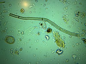 A fungi hyphae under the microscope x400 total magnification.