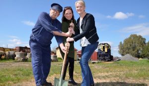 State minister for regional development Jaclyn Symes MLC with Bendigo West MP Maree Edwards and VGR vice-president John Hoy at Friday's sod turning.