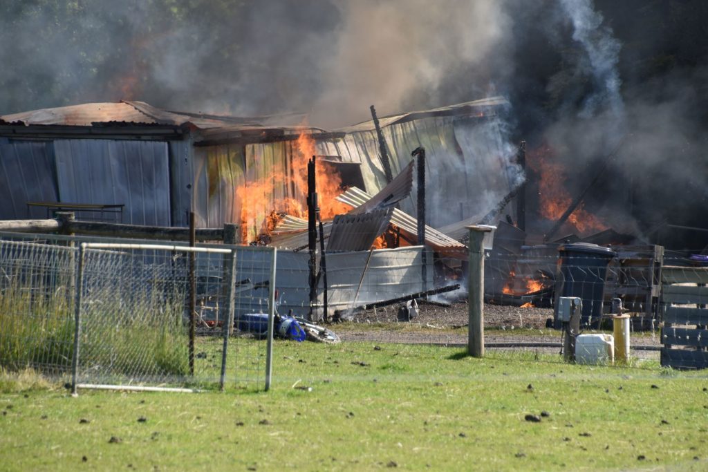Fire brigades from Malmsbury, Kyneton, Spring Hill and Taradale rushed to the Lauriston Road address and began property protection to prevent the fire spreading to the house just metres away.