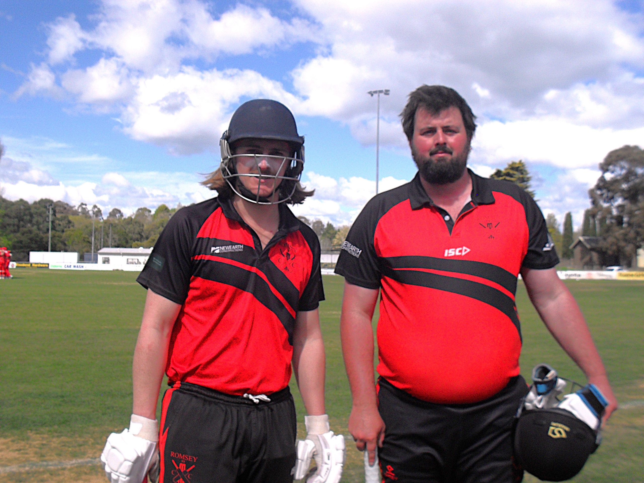 High hopes: Romsey's opening batters Tom Boyer (at left) and Taylor Stevenson put on a 177 partnership in the opening round, and hoped to make another big stand against Gisborne, but paceman Jay King soon dismissed Stevenson for 12, and when Boyer departed for 18 the Redbacks were struggling at 4/73.