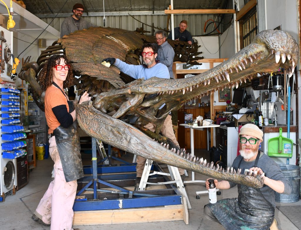 Some jobs are too big for Ewin. For this, he pulled together a team comprising Dean Smith, a local master taxidermist and museum preparator. Nici Wright, a multi-disciplinary artist and sculptor, also welders and skilled engineers Jamie Burke and Jye Geary, and master craftsman and dinophile Doug Alderson.