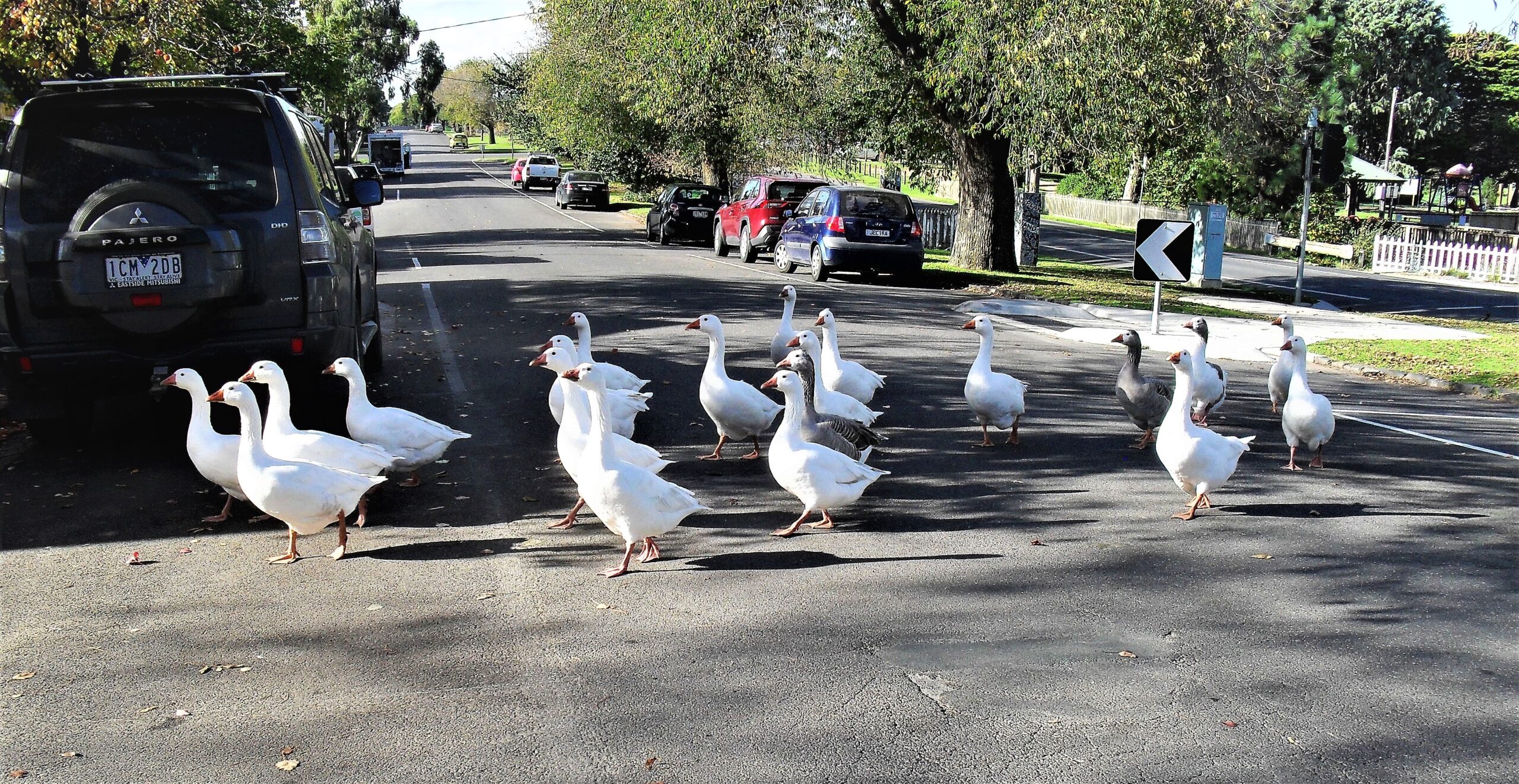 John Ball has lived in the Riddells Creek for 40 years, and said the geese in town provided greater traffic management and speeding mitigation than any government authority ever could.