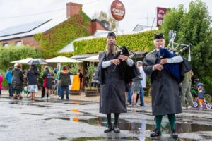 Locals and visitors will walk the country road together, led by the sound of bagpipes, making their way to the Pig and Whistle Hotel.