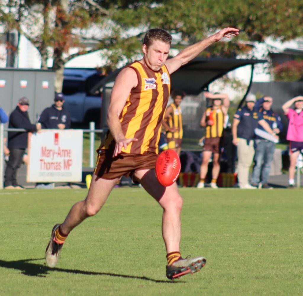 The Hawks never gave up and kicked 14 goals; the opposition kicked 18 and the final margin was 22 points.